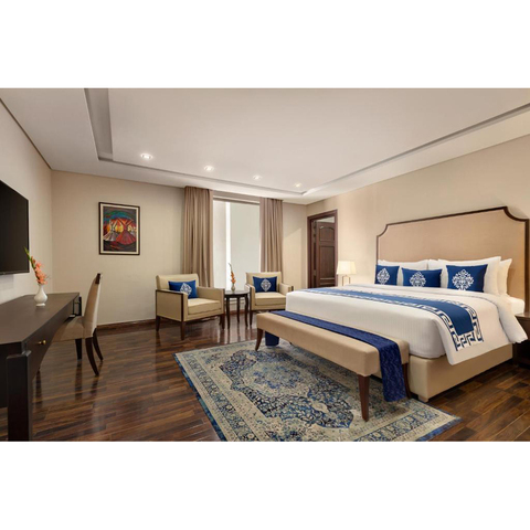 Ramada Inn 5 Star Hotel Estilo nórdico Marco de cama Mesas Sofá Silla Cama Squeen Tamaño Comercial de madera maciza Conjunto de muebles de hotel